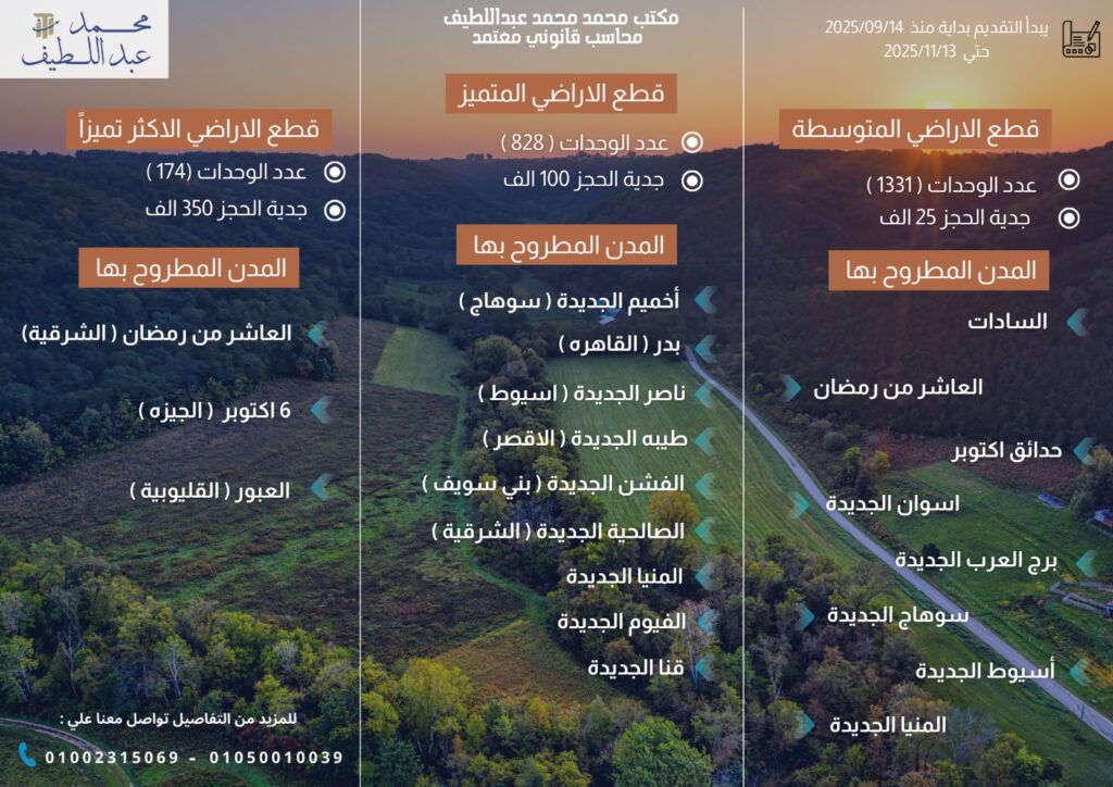 - سداد باقي قيمة الارض على 3 اقساط سنويه متساويه بالفائده المعلنه من البنك المركزي